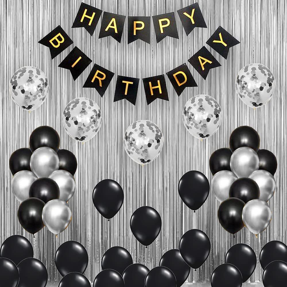 Glitzy Silver And Black Birthday Decor